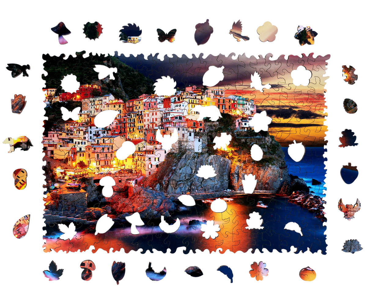 Descoperă cât de distractivă poate fi rezolvarea unui puzzle de înaltă calitate cu tema celui mai colorat oraș italian - Manarola.