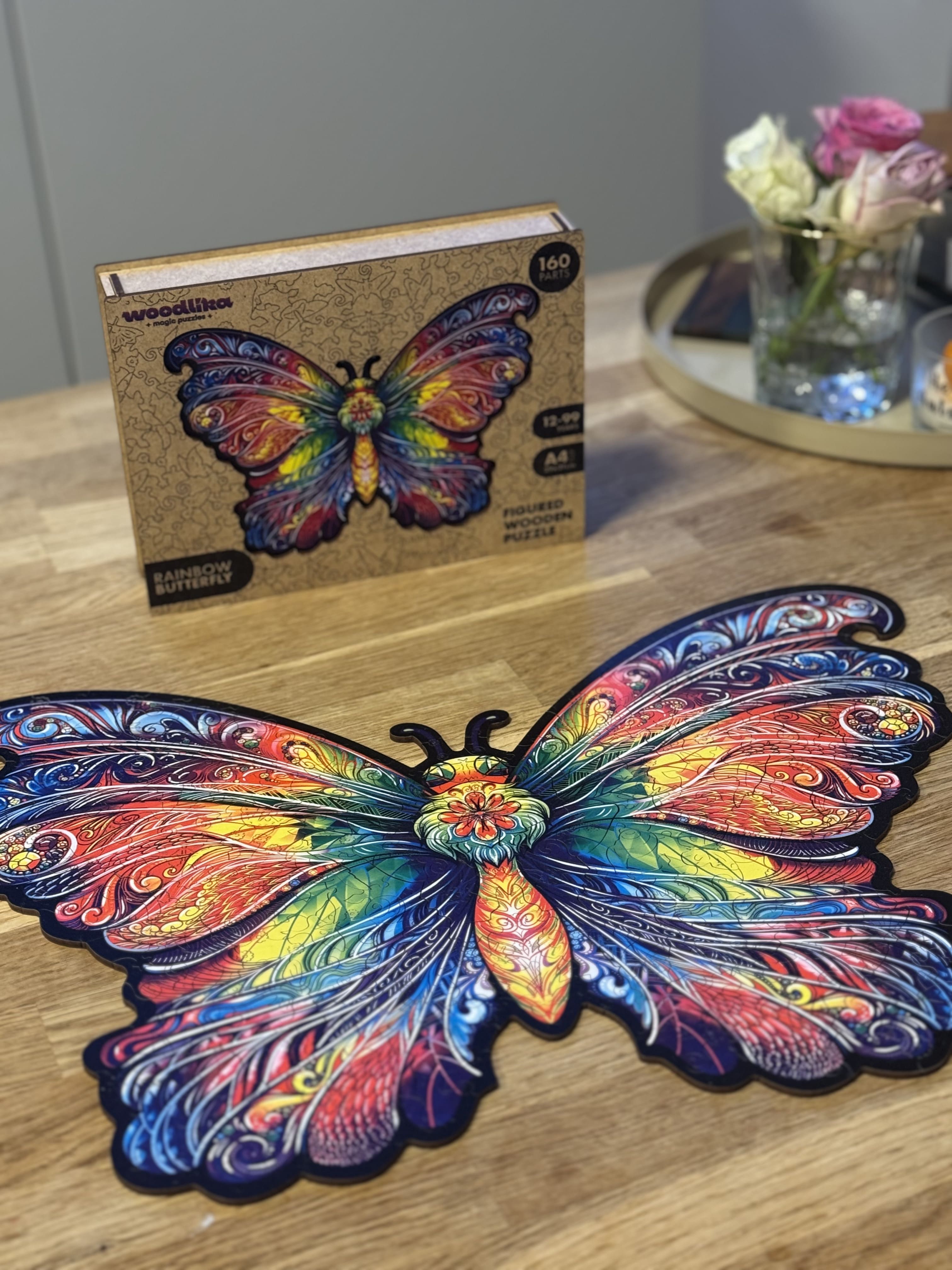 Magia aripilor de fluture. Puzzle premium din lemn, cu 160 de piese unice, dedicate frumuseții naturii și fluturilor plini de culoare. Acestea garantează până la 3 ore de divertisment. Dimensiune 29x21 cm. Fabricat și certificat în UE🇪🇺
